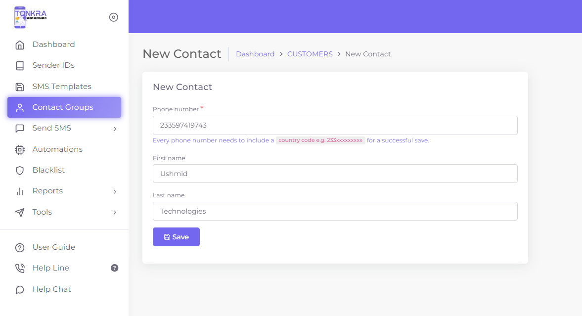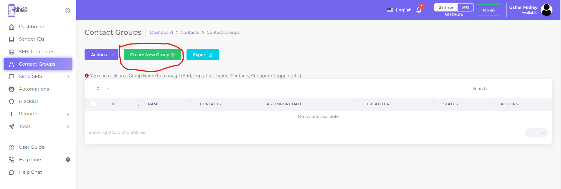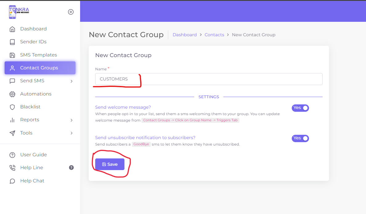 • Visit sms.tonkra.com and log in using your credentials.