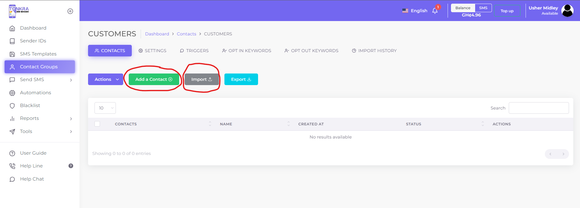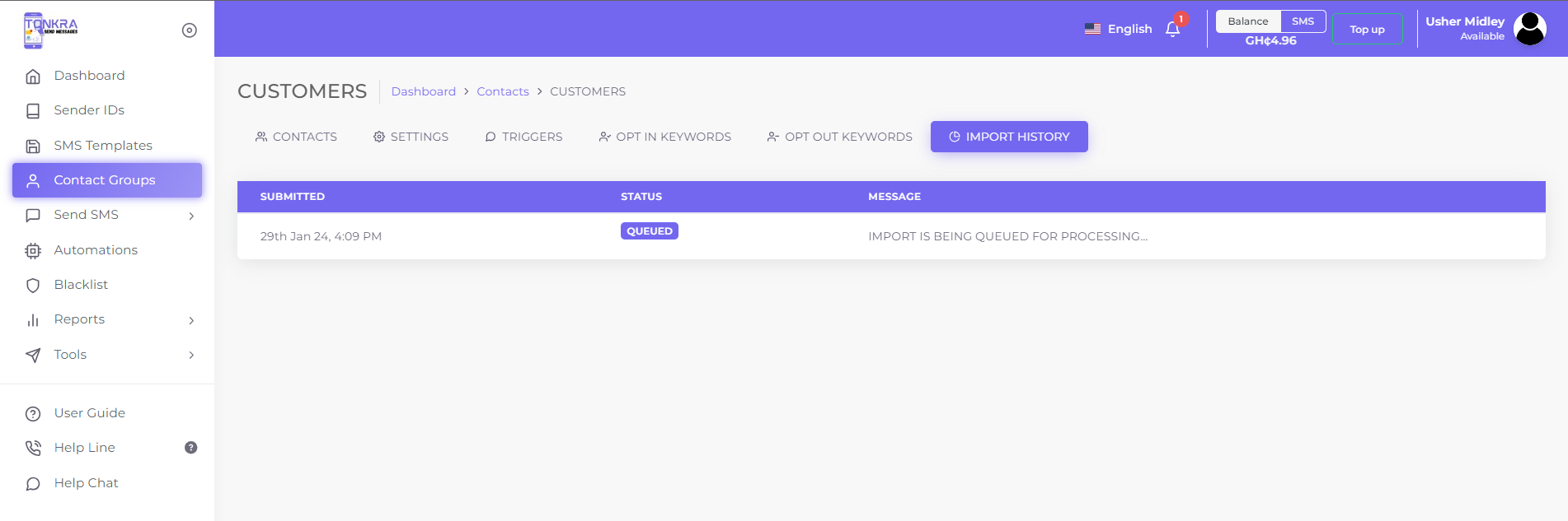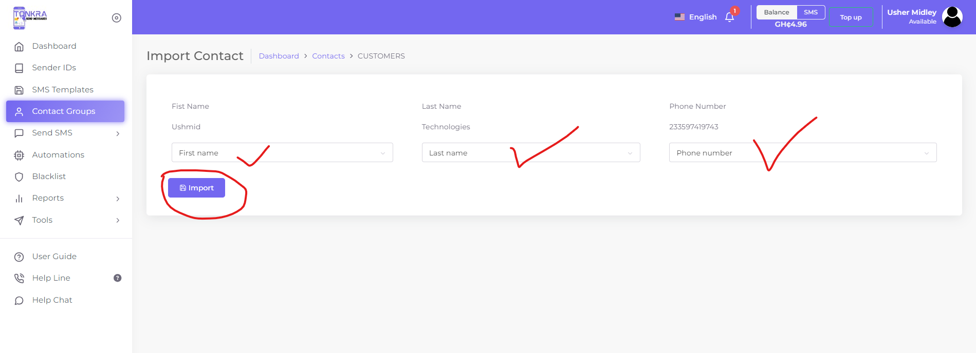 • Visit sms.tonkra.com and log in using your credentials.