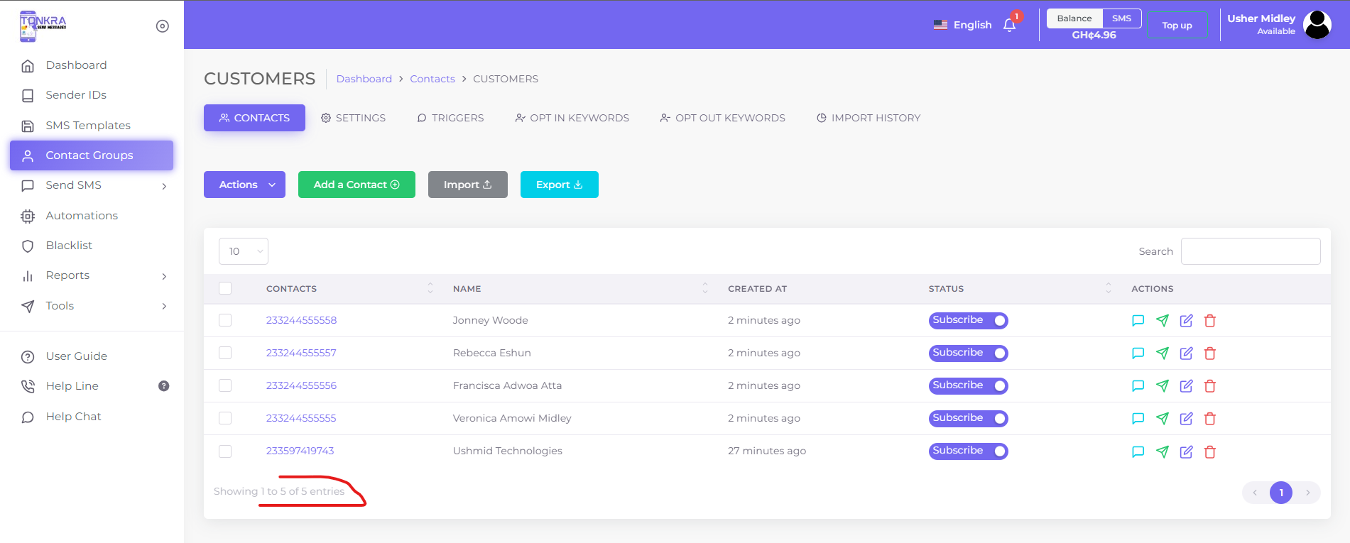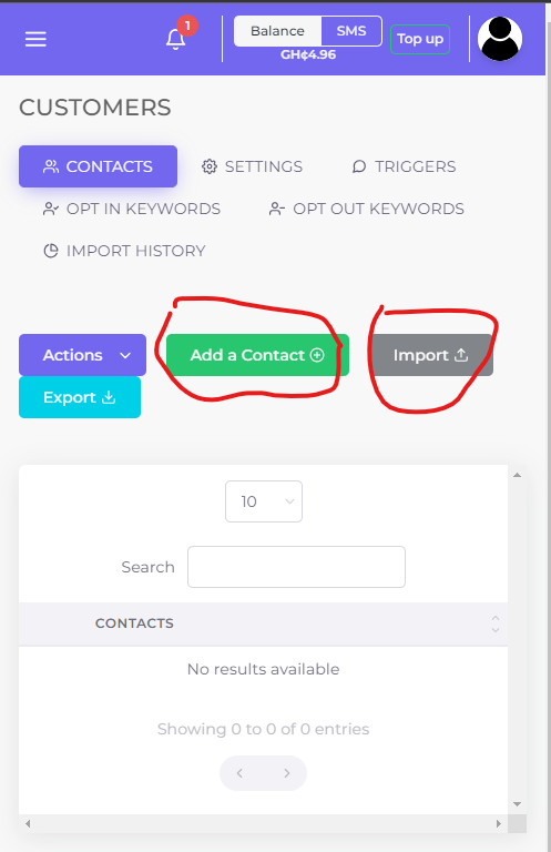 - Click on the “Import” button for bulk contacts.
