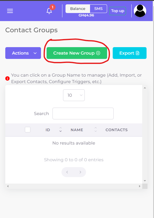 - Navigate to the “Contact Groups” page from the menu.